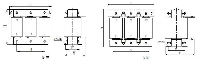 安裝在變頻器輸出端,用于限制變頻器 與電機連接電纜的容性充電電流,鈍化變頻 器輸出的PWM波的電壓上升率。 電機電纜長度超過一定值時,建議在變頻器與 電機之間插入一個電機電抗器。用于補償在長導線時的電容再充電電流。此最大長度決定于變頻器的額定值以及電機電纜的類型。